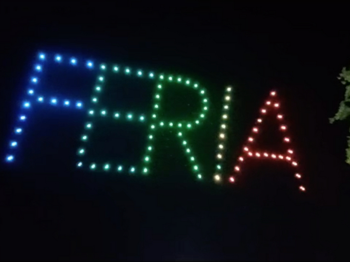 Pirotecnia fría, show de drones y laser mapping en todo el venue como factor wow para proyectar el branding de la marca.
